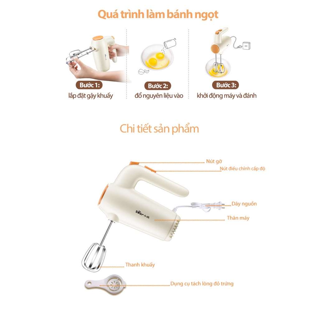 Máy đánh trứng cầm tay Bear B01K1 được thiết kế gọn nhẹ, kết hợp khả năng chống rung giúp bạn không bị mỏi tay khi cầm lâu. Với các chức năng chính là trộn bột và đánh trứng thích hợp cho các bạn nữ, các bà nội trợ đam mê nấu nướng, làm bánh hoặc các cửa hàng làm bánh nhỏ. Ngoài ra sản phẩm còn dễ dàng tháo lắp linh hoạt que trộn để thay đổi và vệ sinh.