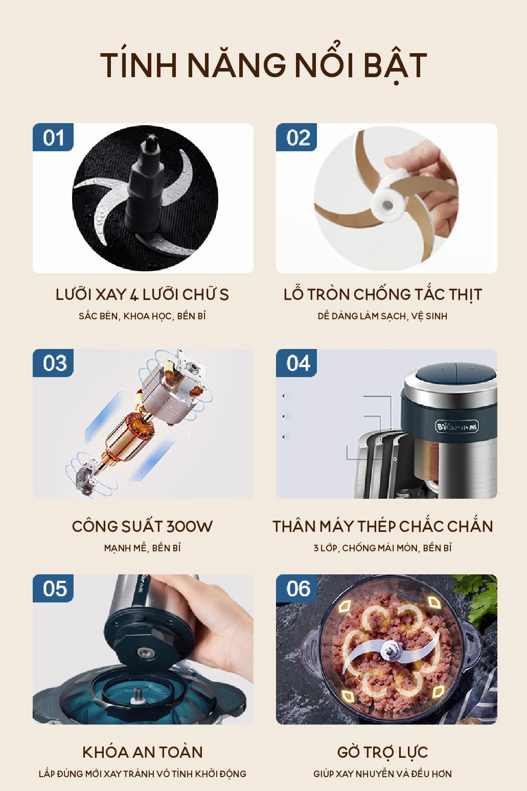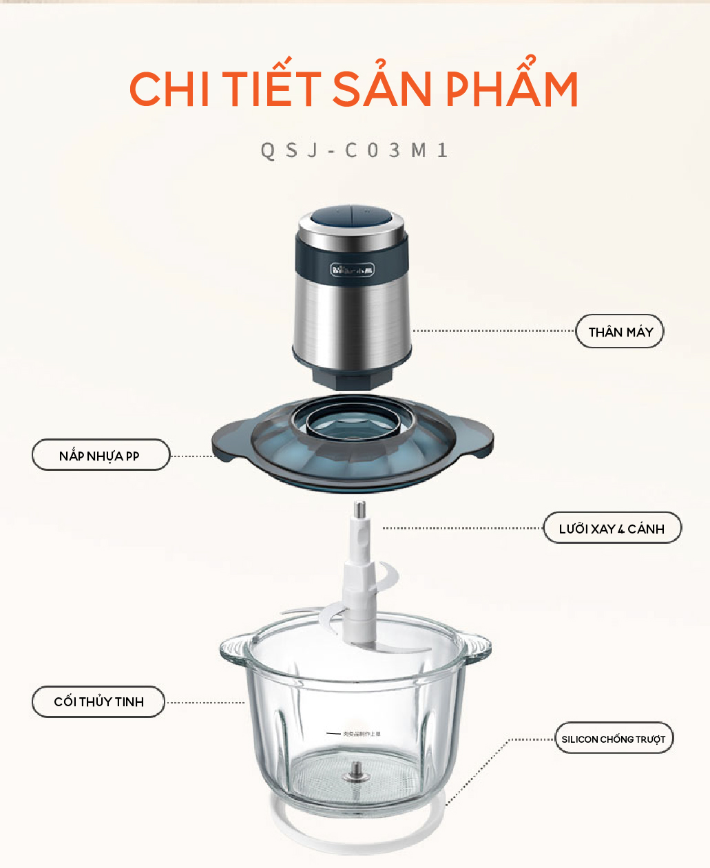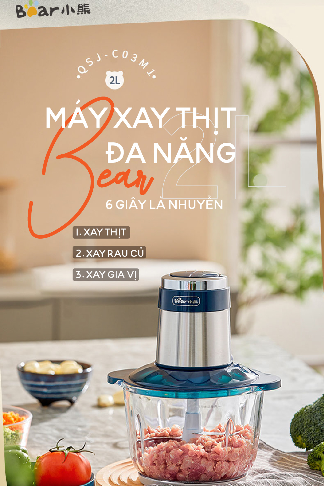 - Tên sản phẩm: Máy xay thịt 2L đa năng Bear QSJ-C03M1 (bộ 2 lưỡi dao)