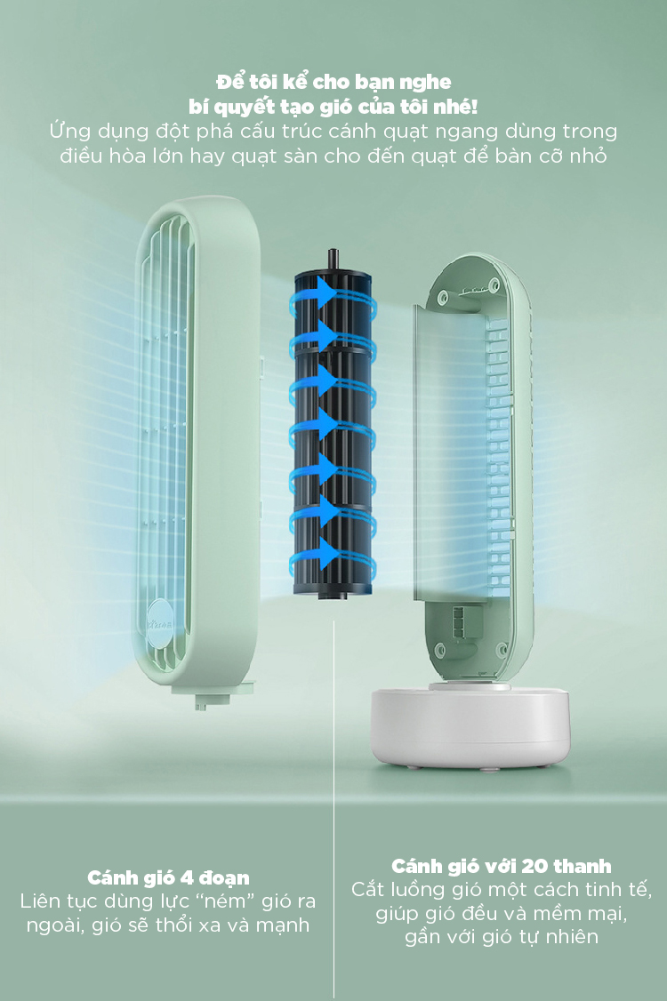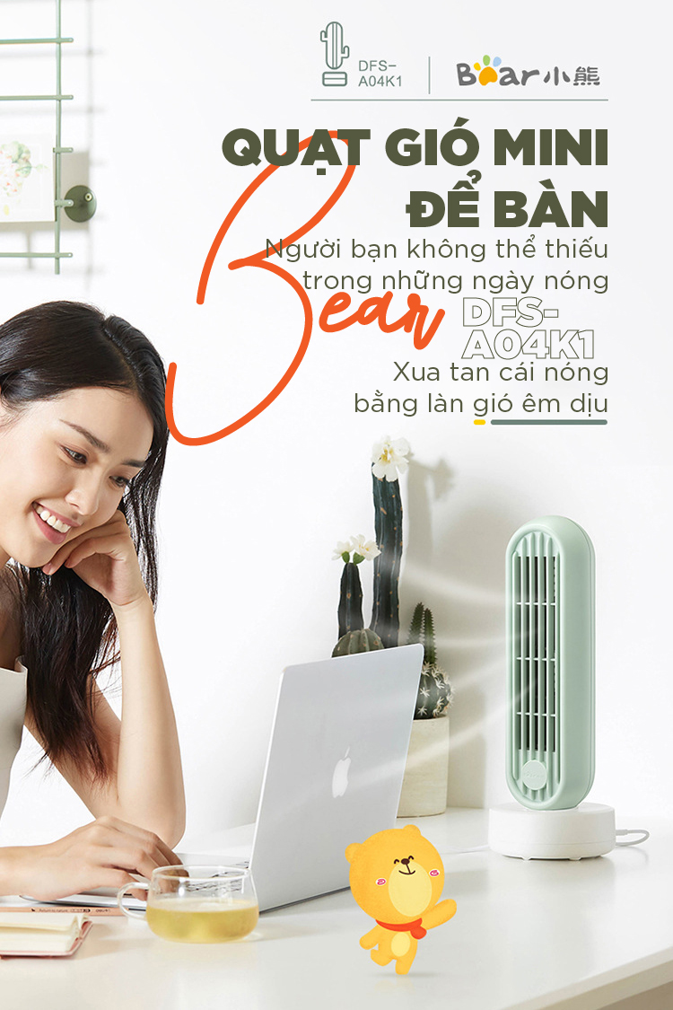Quạt tháp mini để bàn Bear DFS-A04K1 xoay 90 độ