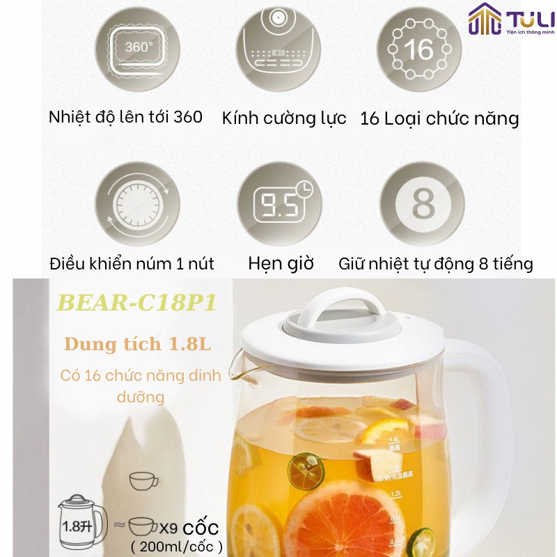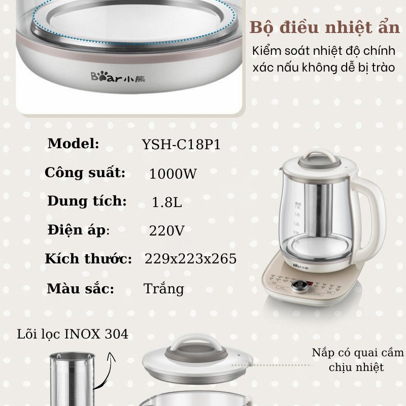 Máy Pha Trà Bear C18P1 sở hữu thiết kế nhỏ gọn, dung tích lên đến 1,8 lít phù hợp với nhiều nhu cầu sử dụng.Với 16 chế độ nấu và công suất cao 1000W máy pha trà Bear giúp việc pha trà của bạn trở nên tiện lợi và nhanh chóng hơn bao giờ hết. Kèm theo cảm biến nhiệt độ hiện đại, sử dụng an toàn và an tâm hơn.