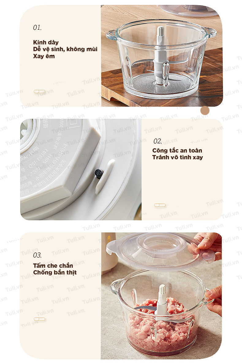 • 4 lưỡi dao siêu bén, tuyệt đối an toàn: xay nhanh chóng và tiết kiệm thời gian.