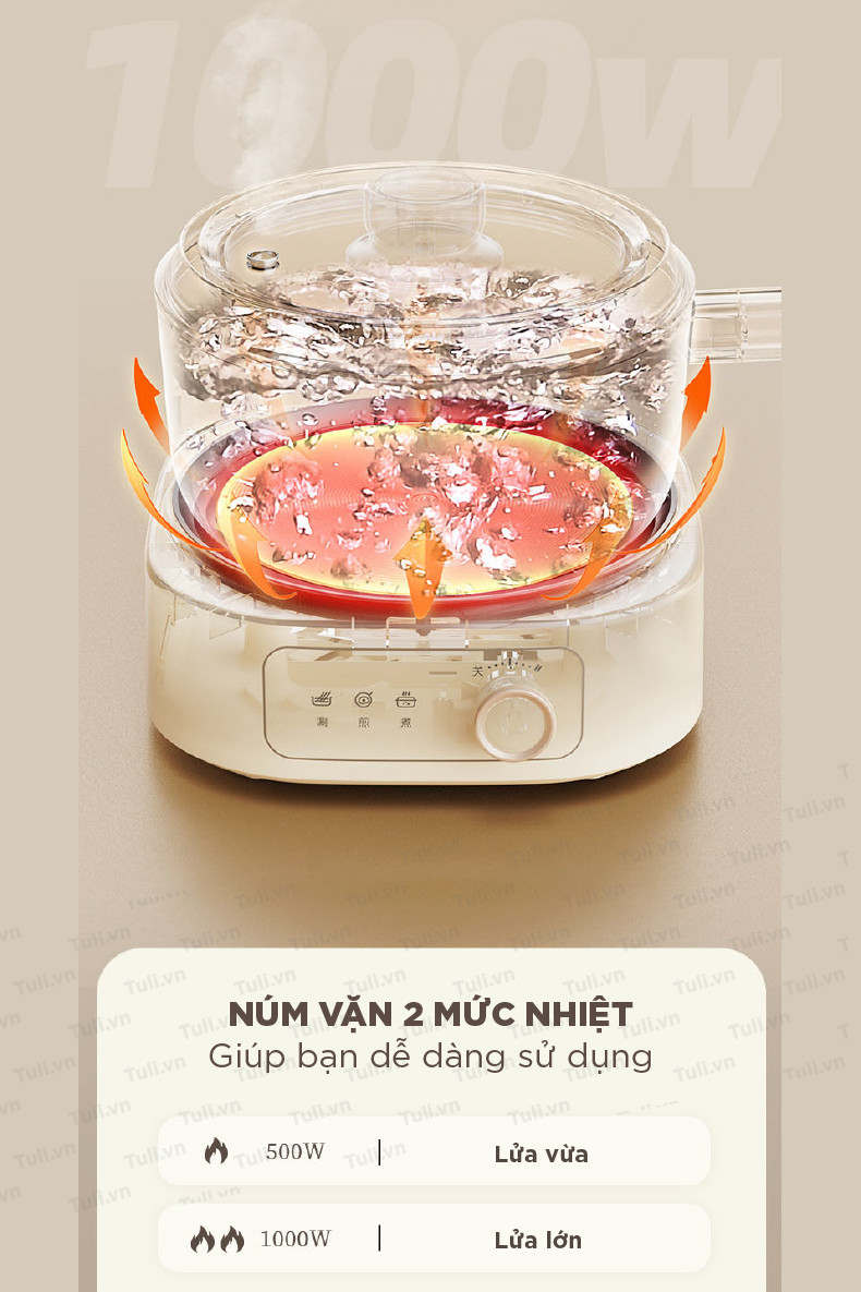 – Lửa vừa: Ở chế độ này nồi có công suất 500W phù hợp để đun nước, luộc rau, nấu canh, ninh hầm…