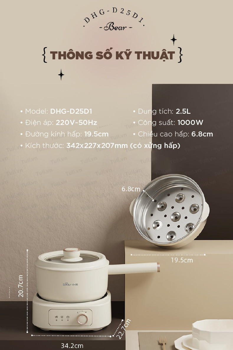 Vừa đa năng vừa tiện dụng, nồi điện đa năng Bear 2.5L DHG-D25D1 đã trở thành người bạn đồng hành không thể thiếu trong căn bếp của nhiều gia đình Việt. Chiếc nồi này không chỉ giúp bạn chế biến món lẩu truyền thống mà còn có thể chiên, xào, hầm, ninh…