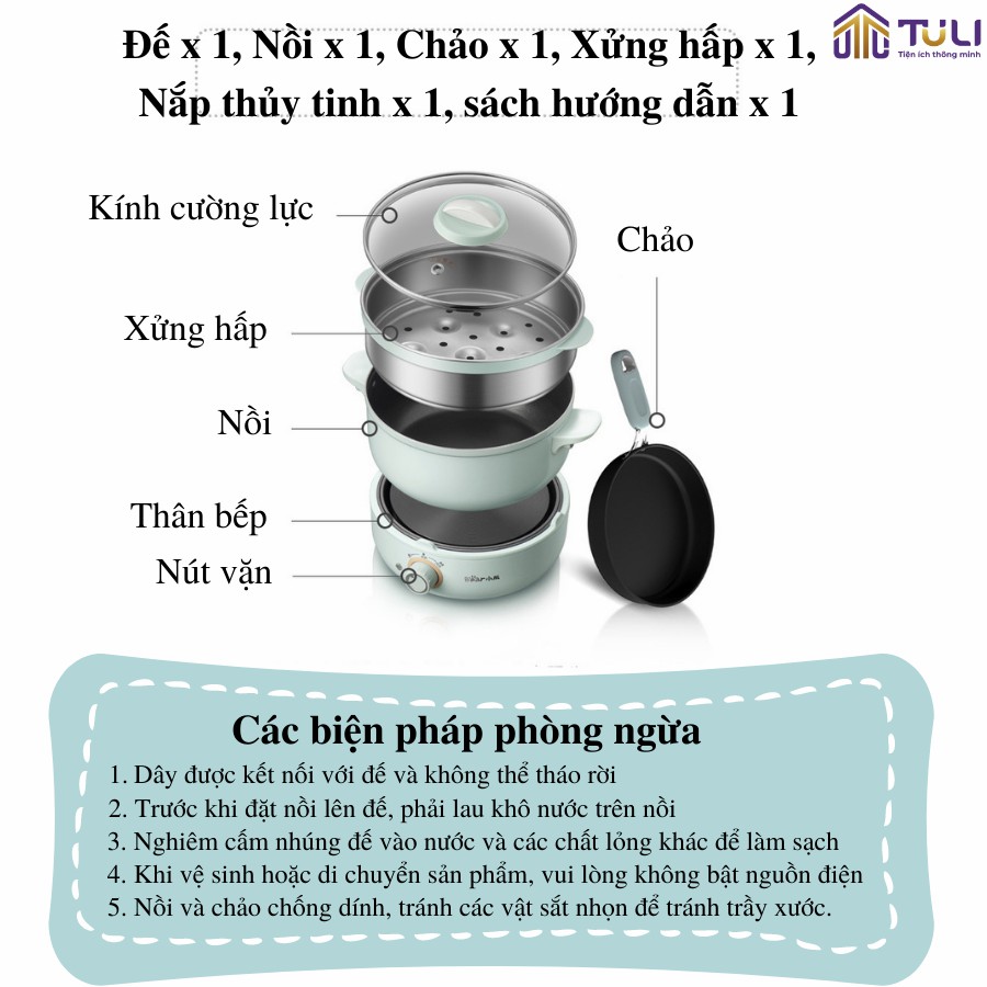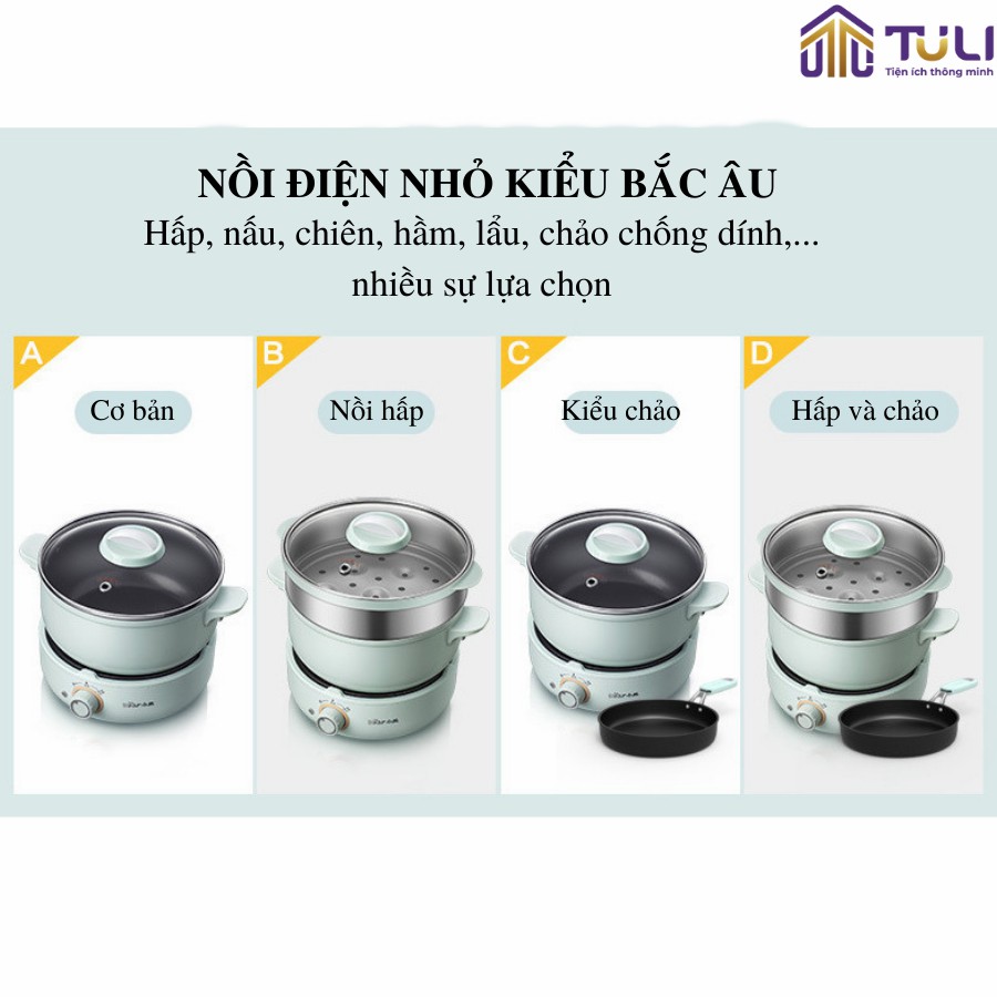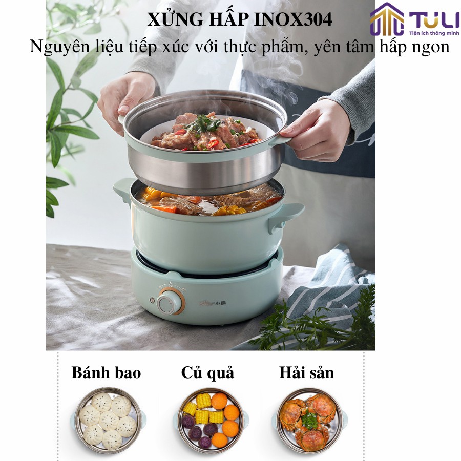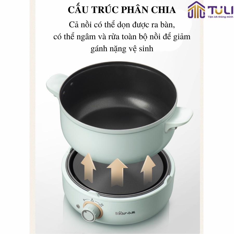 Mang lại sự đa dạng cho những bữa ăn của gia đình bạn, Nồi điện đa năng 4 chi tiết kèm chảo Bear DHG-B25B2 với thiết kế 3 tầng có thể thực hiện các chức năng như hấp, chiên, xào, luộc, hầm, rán. Sở hữu thiết kế tách rời, phần nồi nấu có xoay đa hướng, còn có thể di dời bếp đi nơi khác khi thức ăn đã chính, giúp cho không gian bàn ăn trở nên rộng rãi hơn.