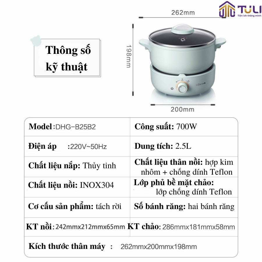 Nồi điện đa năng 4 chi tiết kèm chảo Bear DHG-B25B2 khoác lên lớp áo màu xanh ngọc bích vô cùng sang trọng theo phong cách cổ điển nhưng lại mang trong mình nhiều công nghệ hiện đại bậc nhất. Vừa là một trợ thủ đắc lực trong nhà bếp, vừa tôn lên vẻ sang trọng, hiện đại cho căn bếp của bạn.