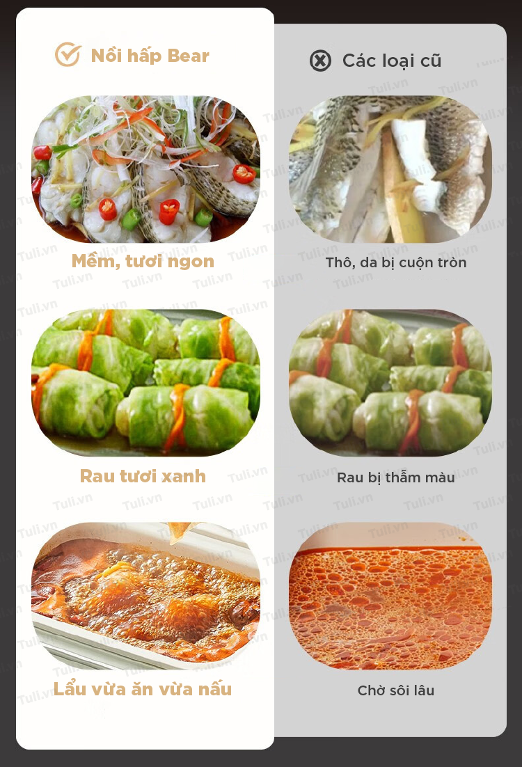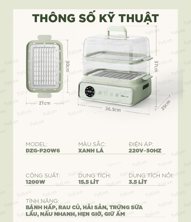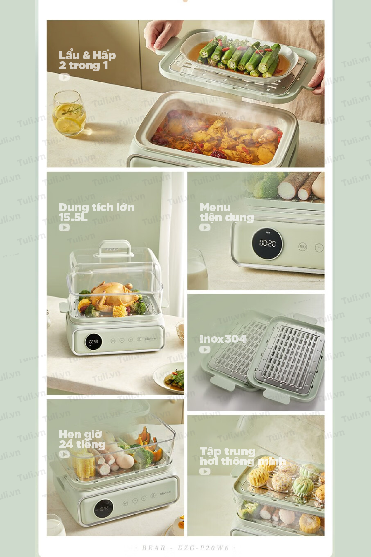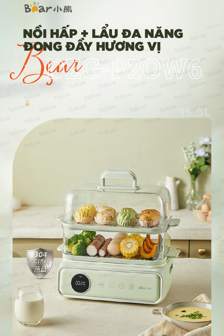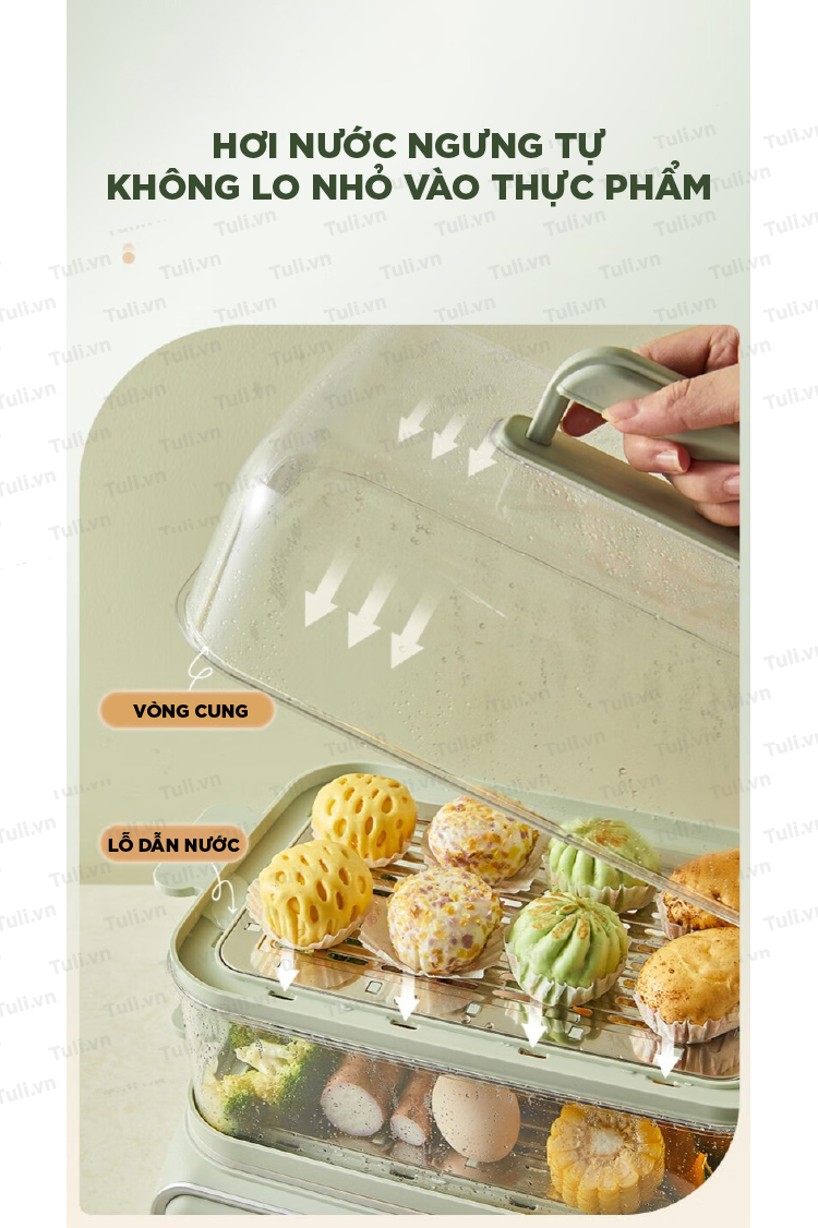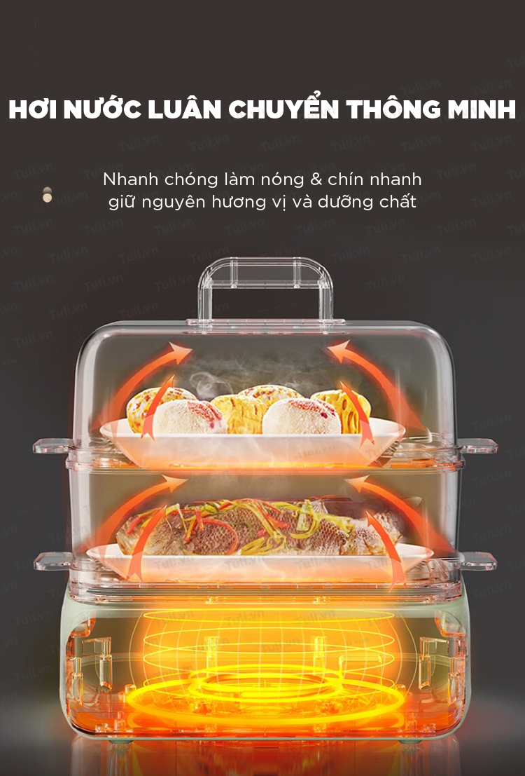 - Nguyên Lý: Nồi hấp 2 tầng hoạt động bằng cách sử dụng hơi nước được tạo ra từ nước đun sôi ở tầng dưới. Hơi nước này sẽ nấu chín thực phẩm ở tầng trên mà không cần tiếp xúc