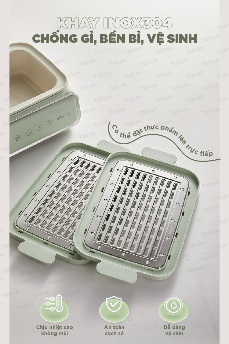 - Chất Liệu: Thường được làm từ các vật liệu chịu nhiệt như thép không gỉ hoặc nhôm, giúp chịu được nhiệt độ cao và đảm bảo sự an toàn cho thực phẩm.